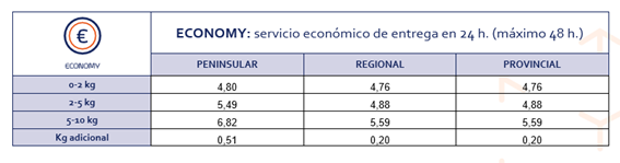 La tarifa máxima de transporte (IVA incluido) aplicada es la siguiente: