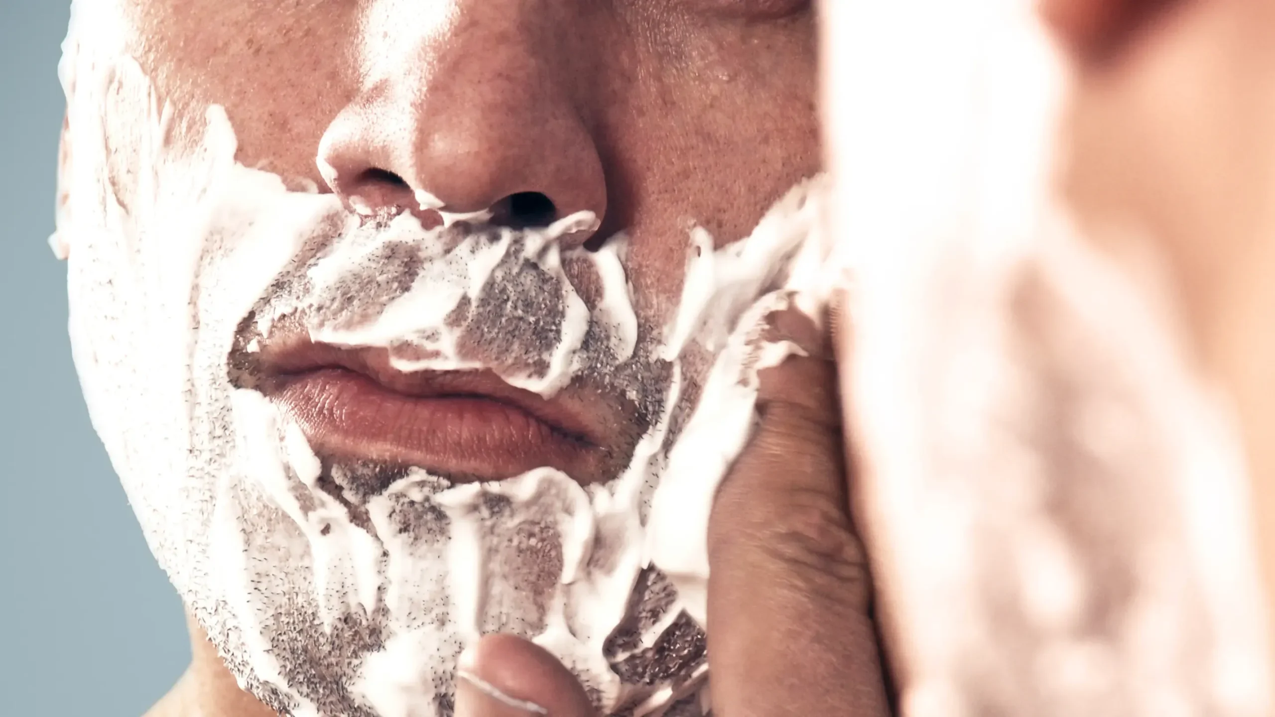 Espuma de afeitado para pieles sensibles que suaviza la barba y protege la piel durante el afeitado.