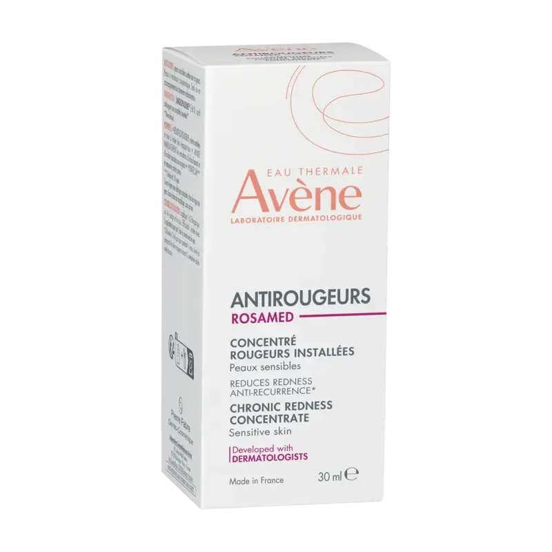 Concentrado antirrojeces que calma, reduce y ayuda a prevenir la reaparición de rojeces en piel sensible. Este tratamiento específico de la gama Rosamed ha sido desarrollado en colaboración con dermatólogos para actuar directamente sobre la causa de las rojeces instaladas, aportando confort intenso a la piel sensible o reactiva. Su fórmula ligera y no grasa contiene Angiopausine™ al 6 %, un ingrediente activo de origen natural que contribuye a reducir la hipervascularización superficial que provoca el enrojecimiento. (Piel normal, sensible, reactiva e intolerante)