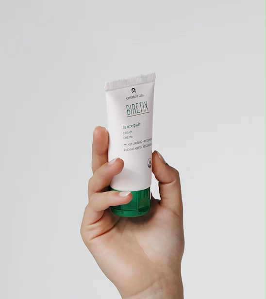 Biretix Isorepair está formulada especialmente para pieles con tendencia acneica que han quedado sensibilizadas o deshidratadas tras tratamientos con retinoides u otros tratamientos dermatológicos. Su fórmula emoliente combina ingredientes que reponen lípidos, refuerzan la barrera cutánea y aportan hidratación duradera, ayudando a disminuir la sensación de tirantez e irritación propia de la piel sensibilizada.