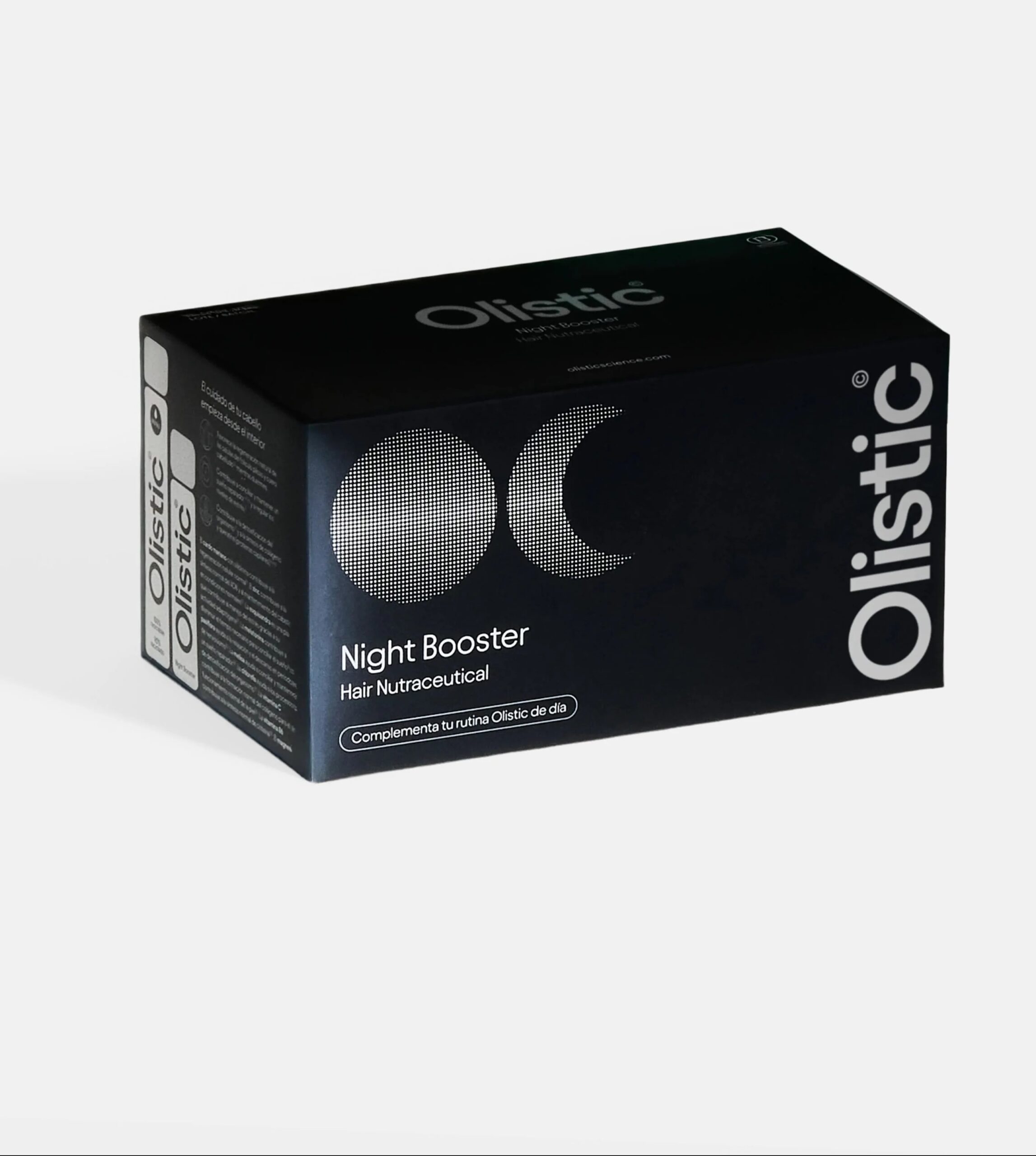 Olistic Night Booster es un complemento alimenticio formulado para tomarse antes de dormir como apoyo a la rutina capilar diaria. Está diseñado para actuar durante la noche, momento en el que el organismo activa de forma natural los procesos de regeneración, ayudando a favorecer el equilibrio del organismo en situaciones de estrés, cansancio o alteraciones del descanso.